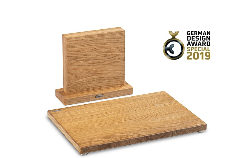 Bei der Entwicklung unserer Design-Sets haben wir darauf geachtet, dass die wichtigsten und präsentesten Küchenhelfer zum Eyecatcher in jeder Küche werden. Schneidebrett und Messerblock gehören in Funktion und Design unzertrennbar aufeinander abgestimmt. Mit unserer XL Version in Eiche hast Du eine große Arbeitsfläche und ausreichend Platz für Dein Schnittgut. Die begehrte Auszeichnung des GERMAN DESIGN AWARDS und viele glückliche Kunden bestätigen unseren Anspruch. Die perfekte Designabstimmung unserer Produkte, hält für jeden das richtige Set bereit. Wähle ein Set oder kombiniere selbst Schneidebrett, Messerblock und passendes Gewürzregal. Gemacht WIE AUS EINEM GUSS.