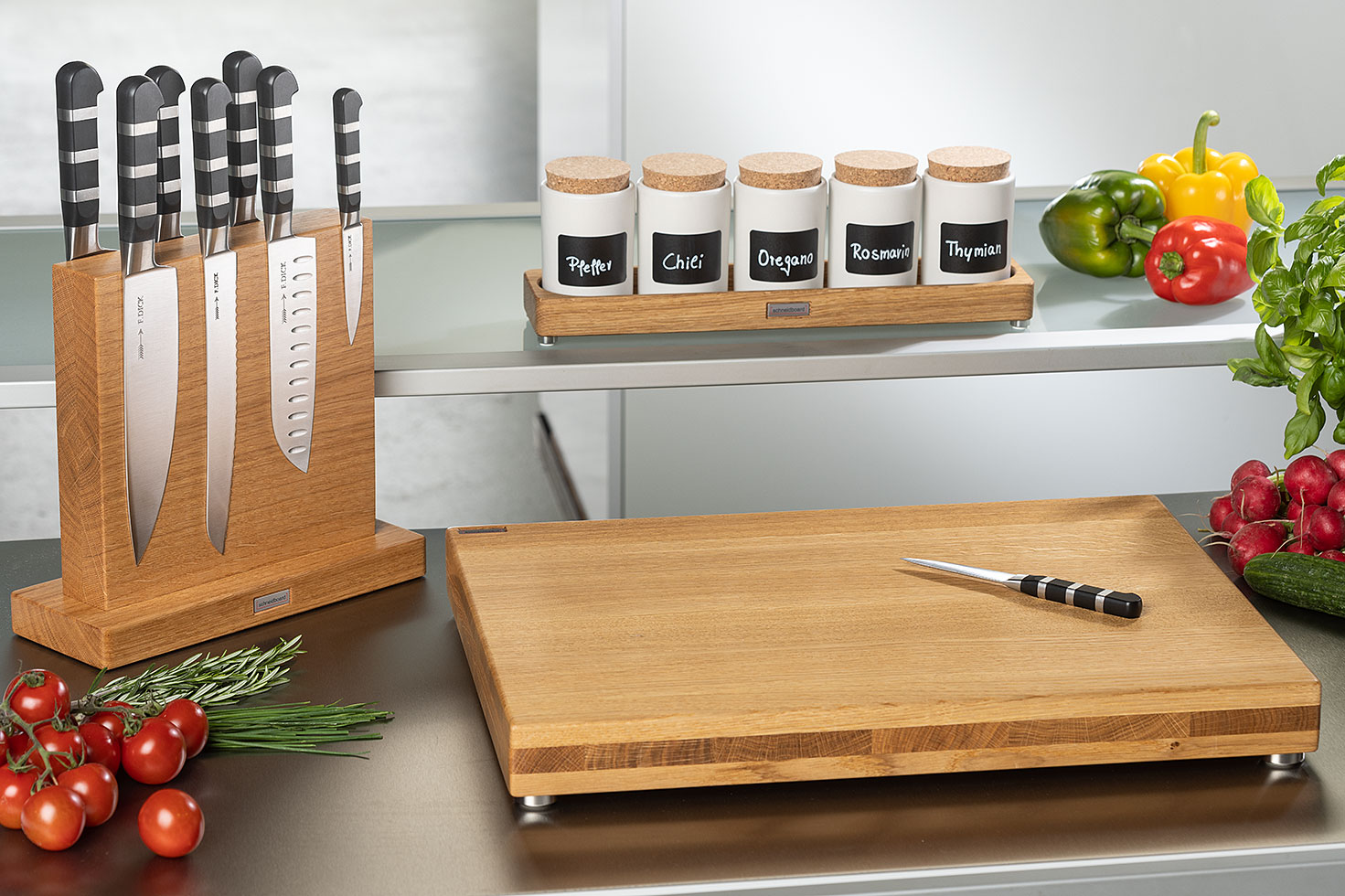 Produktinformationen "Messerblock + Schneidboard Eiche Premium"