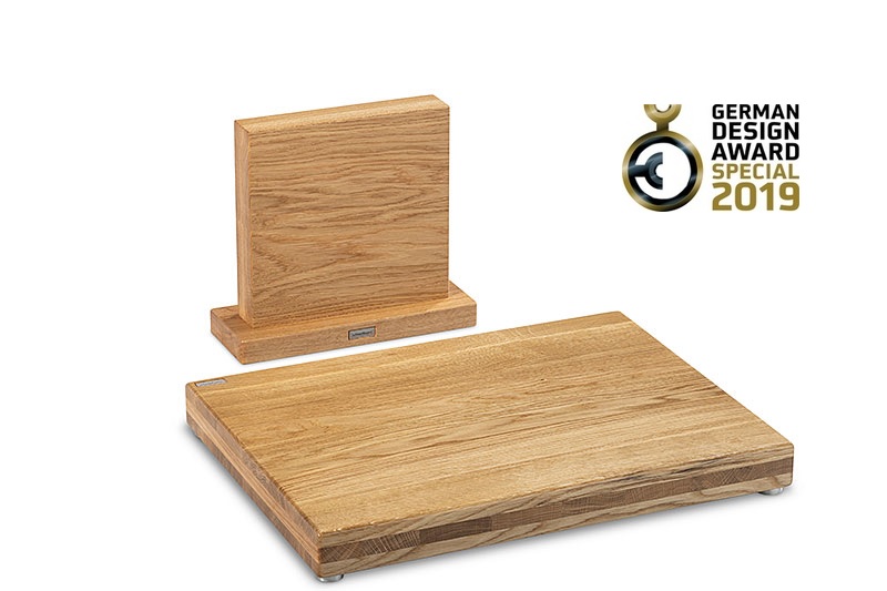 Bei der Entwicklung unserer Design-Sets haben wir darauf geachtet, dass die wichtigsten und präsentesten Küchenhelfer zum Eyecatcher in jeder Küche werden. Schneidebrett und Messerblock gehören in Funktion und Design unzertrennbar aufeinander abgestimmt. Mit unserer Premiumversion hast Du eine große Arbeitsfläche und ausreichend Platz für Dein Schnittgut. Die gratis Schneidmatten sind hygienisch und schonen bei Bedarf Dein Holz. Die begehrte Auszeichnung des GERMAN DESIGN AWARDS und viele glückliche Kunden bestätigen unseren Anspruch. Die perfekte Designabstimmung unserer Produkte, hält für jeden das richtige Set bereit. Wähle ein Set oder kombiniere selbst Schneidebrett, Messerblock und passendes Gewürzregal. Gemacht WIE AUS EINEM GUSS.
