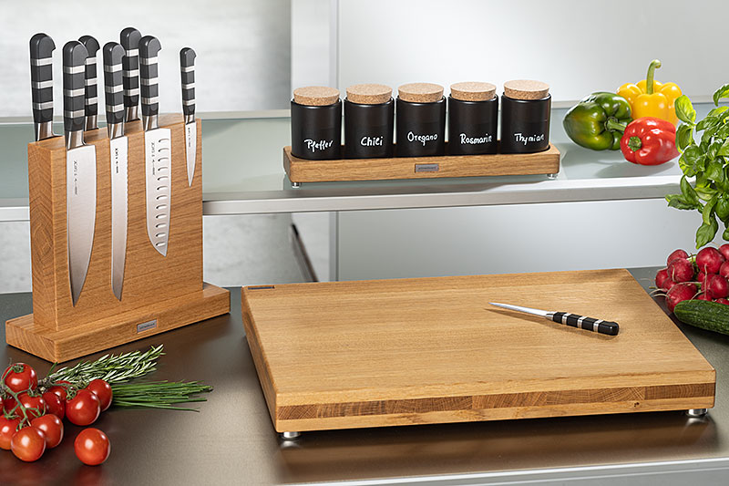 Die gesamte Serie Schneidboard bildet ein Design-Set, wie aus einem Guss. Ob Du die Gewürzdosen in schwarz oder weiß allein, oder mit den Serviertöpfchen kombinierst, oder ob Deine Wahl auf Nussbaum oder Eichenholz fällt, in jedem Fall ist das Set ein echter Hingucker. Hochwertigste Materialen machen die Sets edel und langlebig. Qualtität, aus Überzeugung Made in Germany.
