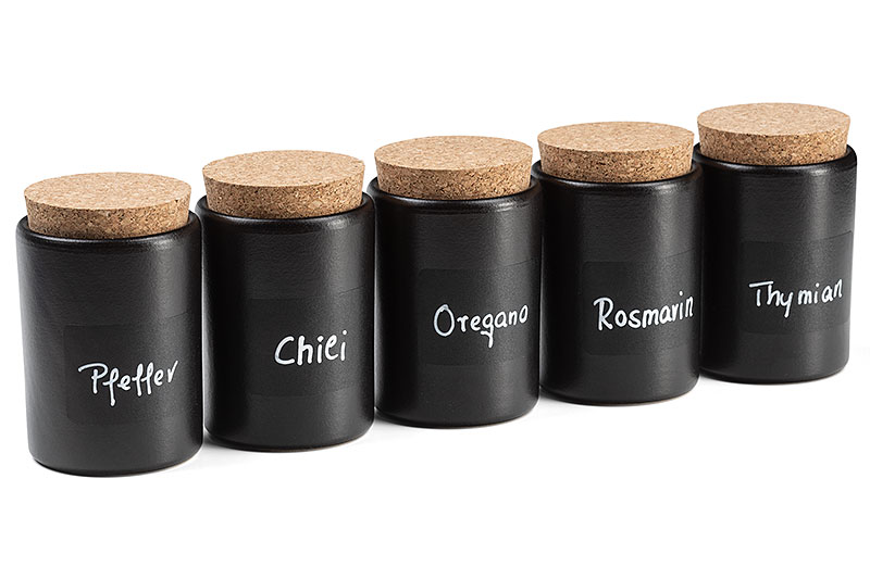 Gewürze sind schön und luftdicht verstaut. 5-teiliges Gewürzdosen-Set in schwazr matter Keramik für Gewürze Deiner Wahl.