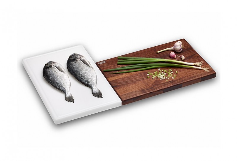 Schneidebretter Nussbaum in Kombination mit Schneidebrett Kunststoff