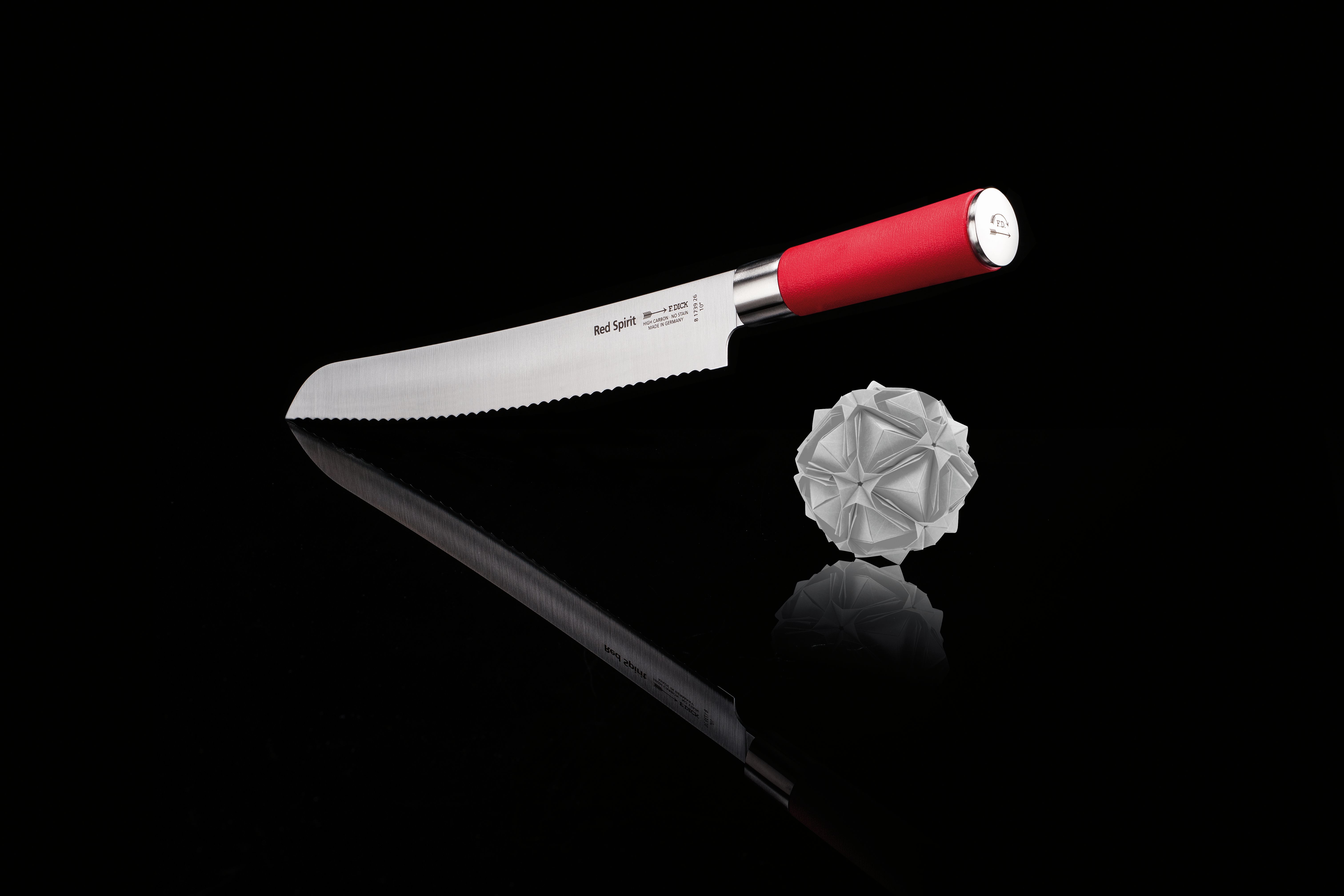 Inspiriert durch asiatische Handwerkskunst, gefertigt mit deutscher Genauigkeit und traditioneller Herstellungsweise unter Einsatz modernster Fertigungstechnologie, präsentiert Friedr. Dick eine neue, inspirierende Messerserie: Red Spirit. Die lange Klinge dieses Brotmessers schneidet problemlos Brotscheiben oder größere Brotlaibe ohne Flocken. Es eignet sich auch für Früchte, wie Melonen oder Ananas, selbst feinste Scheiben sind kein Problem.