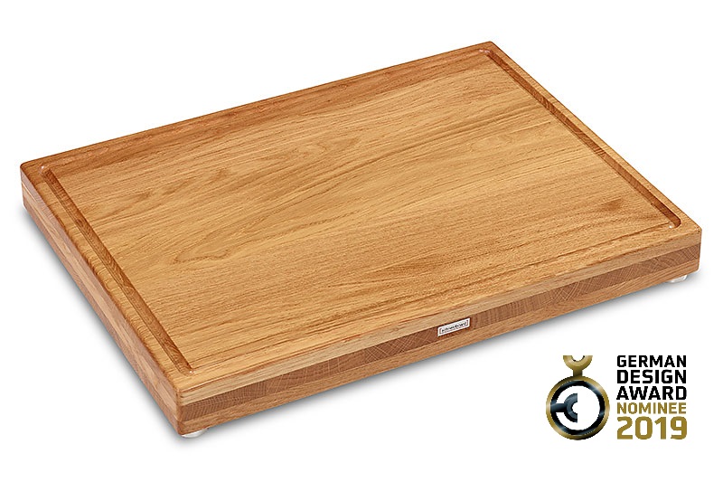 Das Schneidboard Eiche Premium S+ wurde in einer kleinen Manufaktur im Münsterland entwickelt und wird auch dort in kleinen Serien mit viel Herzblut hergestellt. Es werden nur hochwertigste Materialen mit viel Sorgfalt verarbeitet. Viele tausend Nutzer haben ihr Schneidboard bereits über mehrere Jahre im Einsatz. Diese Tatsache und eine Auszeichnung mit dem begehrten German Design Award machen aus eine Schneidebrett DAS SCHNEIDBOARD.