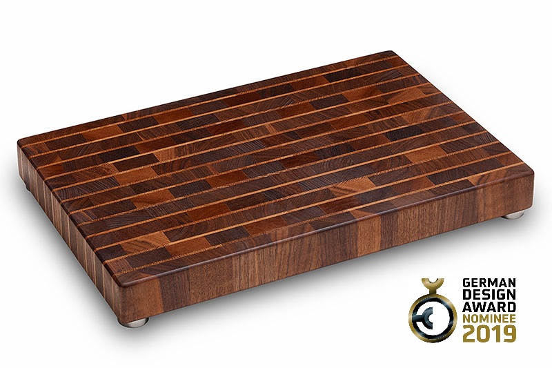 Dass Hackbrett Nussbaum wurde in einer kleinen Manufaktur im Münsterland hergestellt. Es werden nur hochwertigste Materialen mit viel Sorgfalt verarbeitet. Viele tausend Nutzer haben ihr Schneidboard bereits über mehrere Jahre im Einsatz. Diese Tatsache und eine Auszeichnung mit dem begehrten German Design Award machen aus einem Schneidebrett ein Designelement.