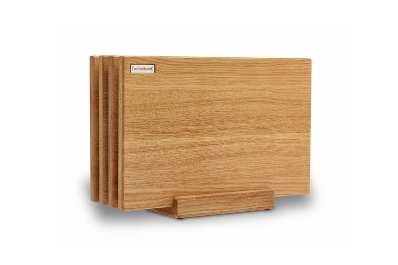 Vier edle Frühstücksbrettchen inkl. passendem Halter in Eichenholz