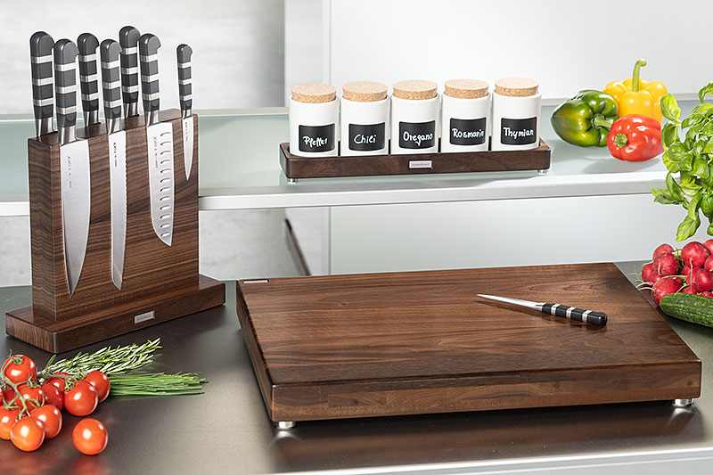 Die Gewürzleiste passt perfekt in das gesamte Sortiment der Serie Schneidboard. Flexibel kann es mit allen Nussbaum Schneidebrettern und dem Messerblock kombiniert und konfiguriert werden. Ein Design-Set für Deine Design-Küche, gefertigt mit hoher Qualität für hohe Ansprüche.