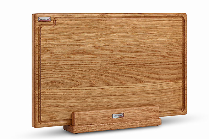 Schneidebrett Eiche mit Saftrille und inkl. passendem Schneidbrett-Halter