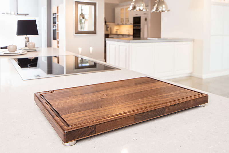 Das Schneidboard S+ hat eine umlaufende Saftille, die verhindert, dass der austretende Saft des Schnittgutes auf die Arbeitsplatte läuft. Der Verlauf der Saftrille verleiht dem Brett ein ganz besonders ästhetisches Design.