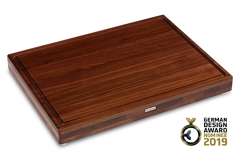 Das Schneidboard Nussbaum Premium S+ wurde in einer kleinen Manufaktur im Münsterland entwickelt und wird auch dort in kleinen Serien mit viel Herzblut hergestellt. Es werden nur hochwertigste Materialen mit viel Sorgfalt verarbeitet. Viele tausend Nutzer haben ihr Schneidboard bereits über mehrere Jahre im Einsatz. Diese Tatsache und eine Auszeichnung mit dem begehrten German Design Award machen aus einem Schneidebrett DAS SCHNEIDBOARD.