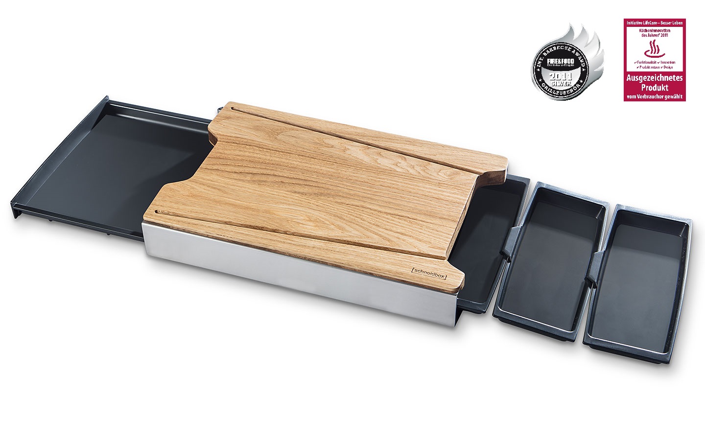 Die Schneidbox Idee: Patentiert und ausgezeichnet mit dem BBQ Award und dem Kücheninnovationspreis. Entwickelt und produziert in einer kleinen Manufaktur im Münsterland. Unter Verwendung von hochwertigsten Materialen haben wir einen langlebigen und nachhaltigen Küchenhelfer geschaffen, mit dem Du viel Spaß beim Kochen haben wirst, versprochen. Mehrere Tausend zufriedene Schneidbox Nutzer sprechen für sich.