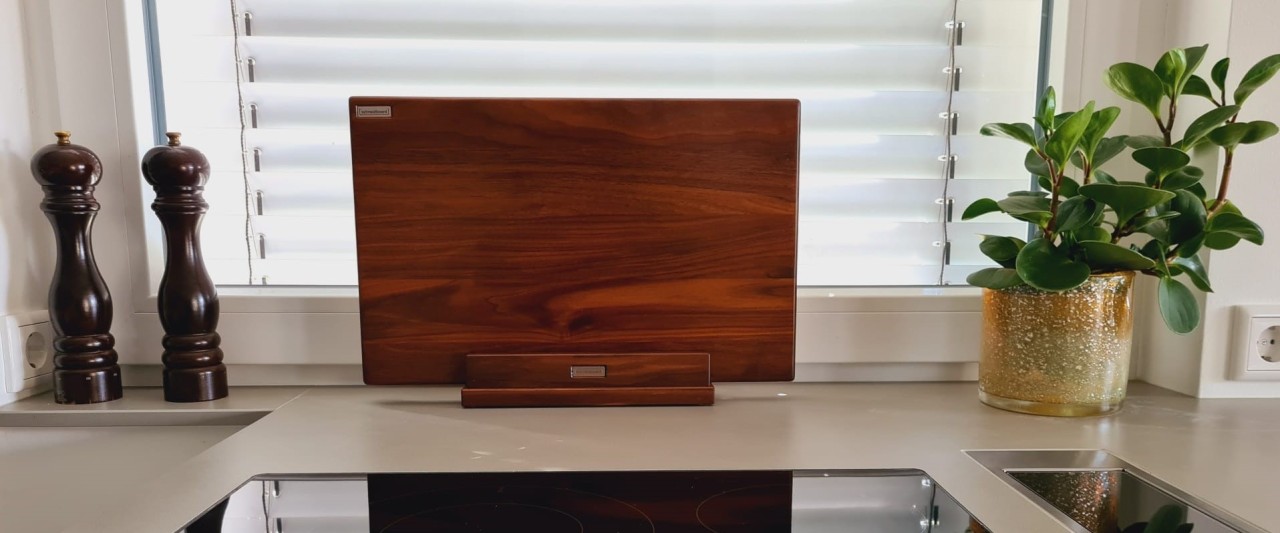Doch das Schneidboard sieht nicht nur fantastisch aus, seine praktischen Aspekte machen es zu einem echten Muss in jeder Küche! Platzeinnehmende Schneidebretter in den Schubläden und Schränken gehören der Vergangenheit an. Ein Übereinanderstapeln von Tellern und Brettern, die das Herausholen des Schneidebretts zu einer Tortur machen, sind vorbei. Die Schneideboards inkl. Halter sind formschön und zugleich immer griffbereit. Ein einfaches Handling ist damit garantiert! Zudem ist durch die Position des Schneideboards ein schnelles Trocknen des Holzes gewährleistet, was für die Qualität von Holzschneidebrettern stets sehr wichtig ist!